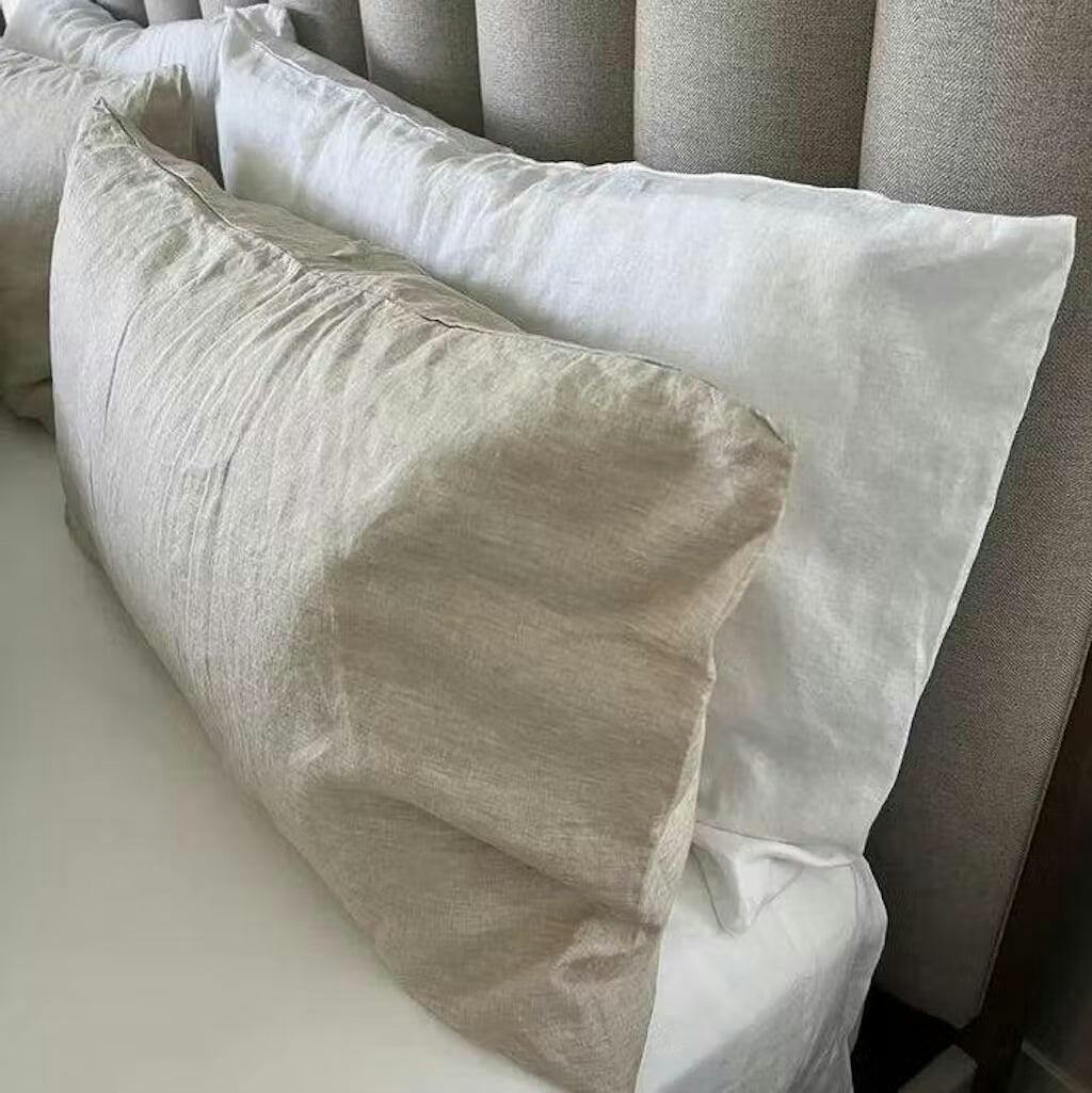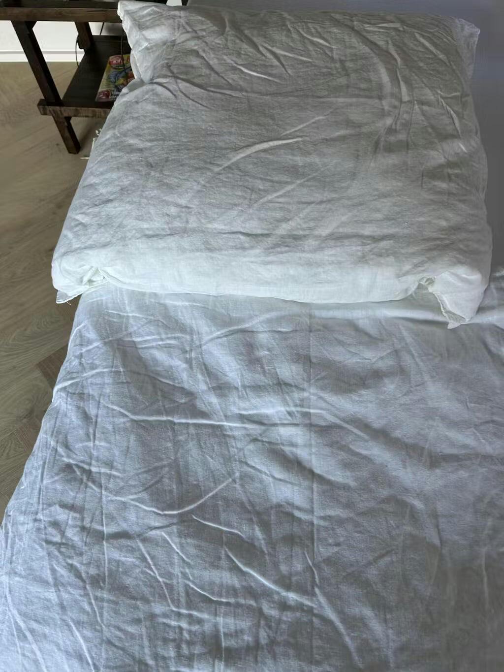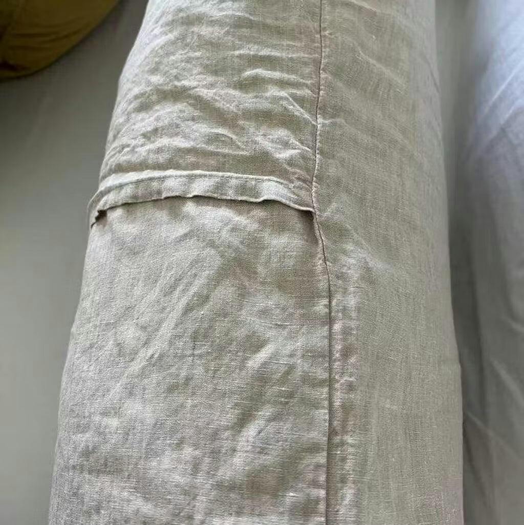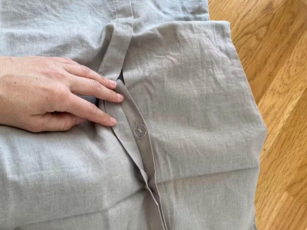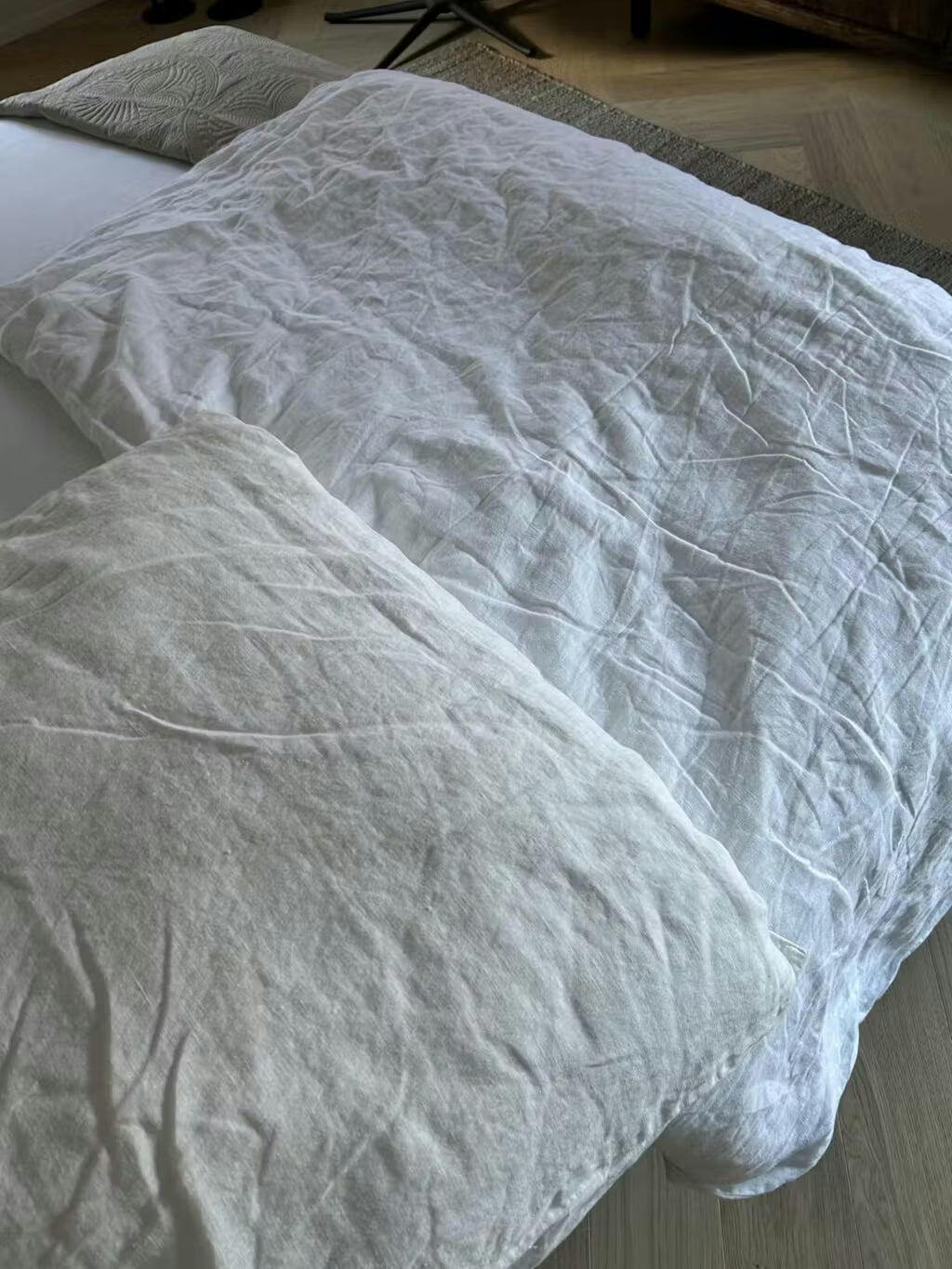 Our high-quality linen undergoes mechanical pre-washing to soften the fibers before use. The initial crisp texture is natural and gradually becomes smoother with each wash as the cellulose fibers relax.